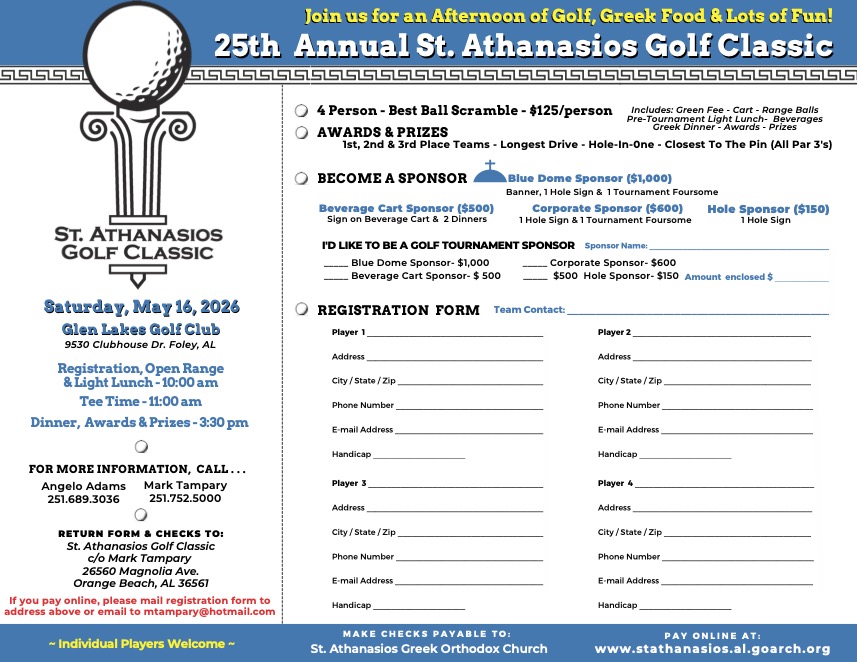 St. Athanasios Greek Orthodox Church, located in Gulf Shores, Alabama, is under the jurisdiction of His Eminence Metropolitan Sevastianos of the Greek Orthodox Metropolis of Atlanta.